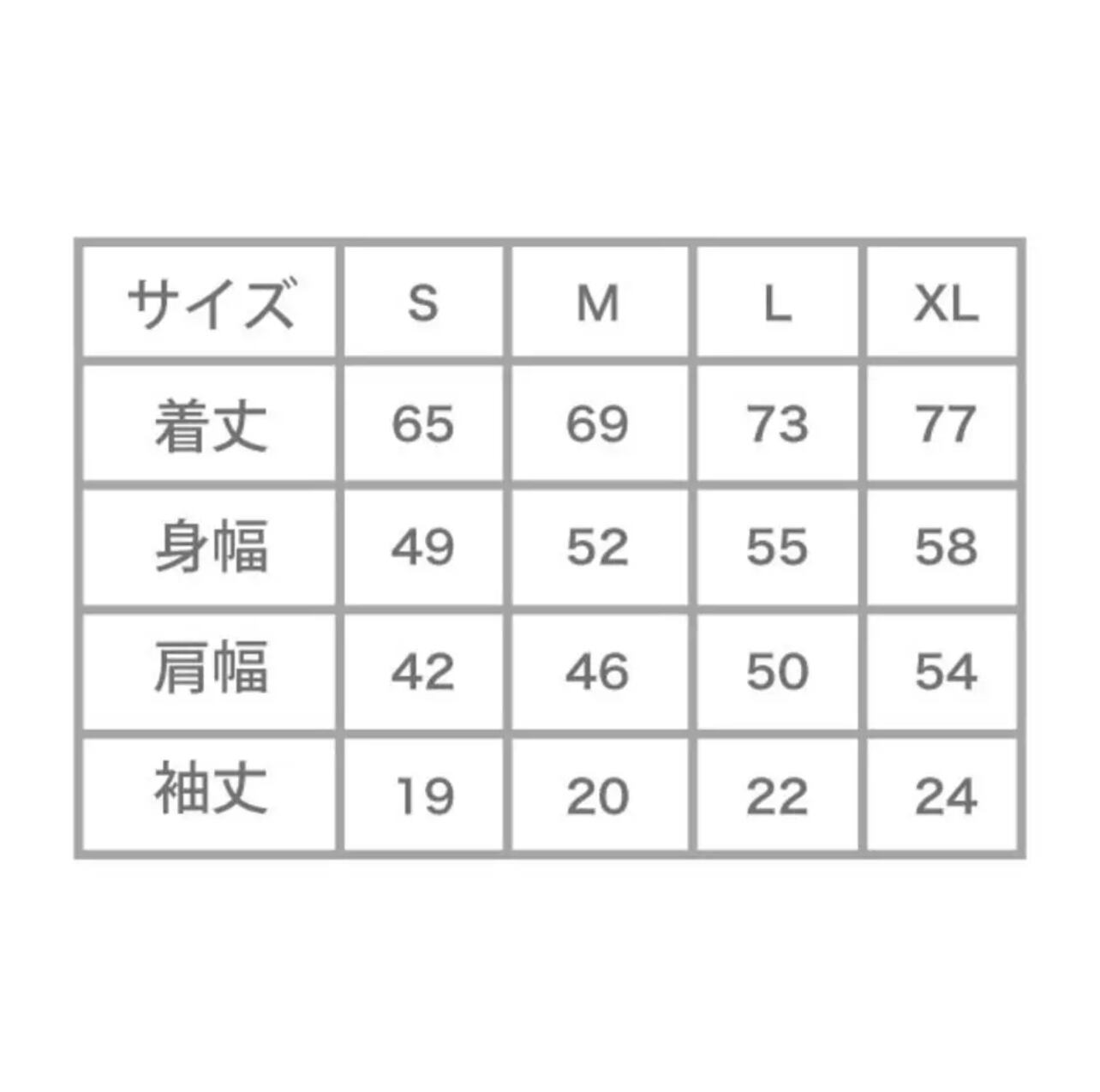 サイズ:身丈/身幅/肩幅/袖丈 (cm)