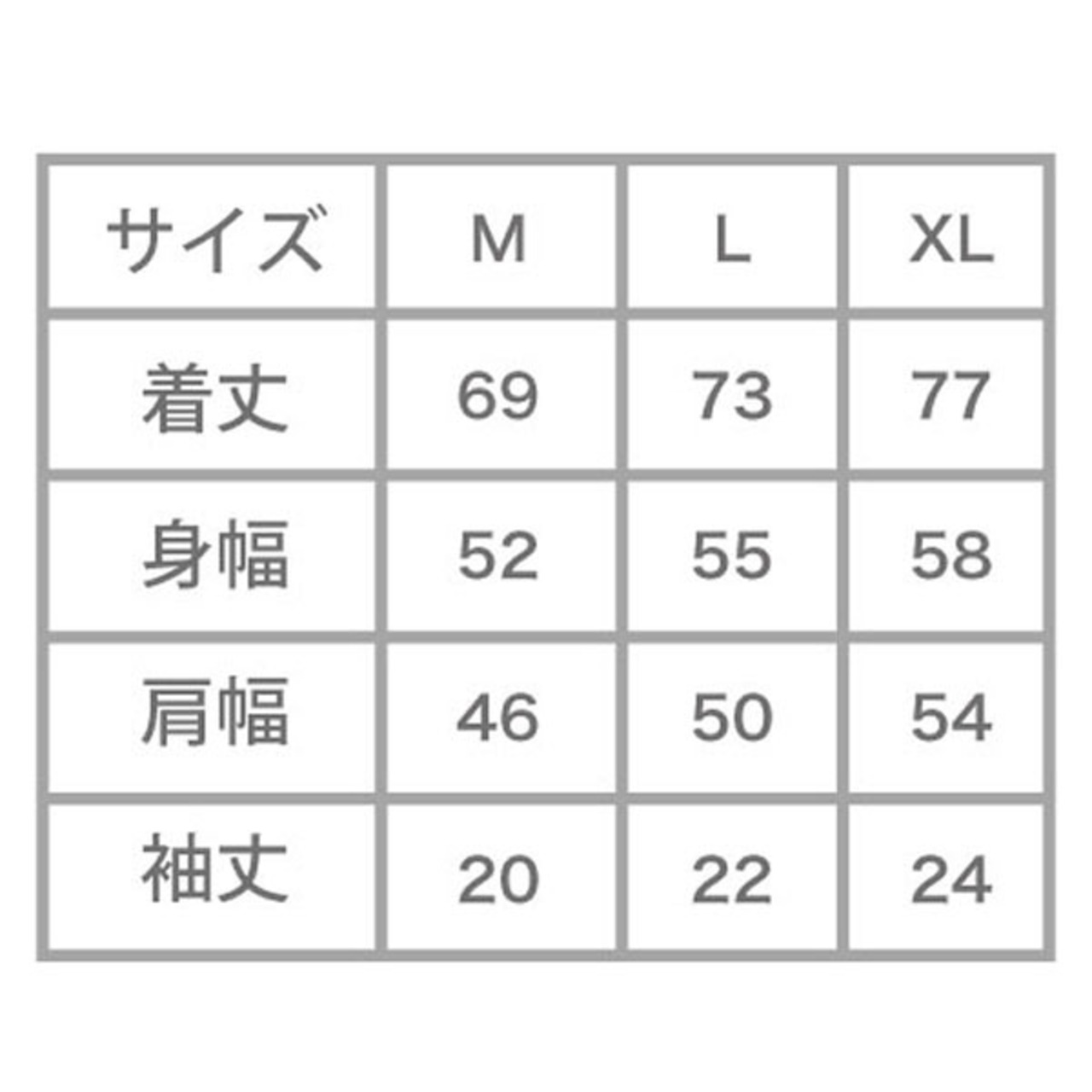 サイズ:身丈/身幅/肩幅/袖丈 (cm)
